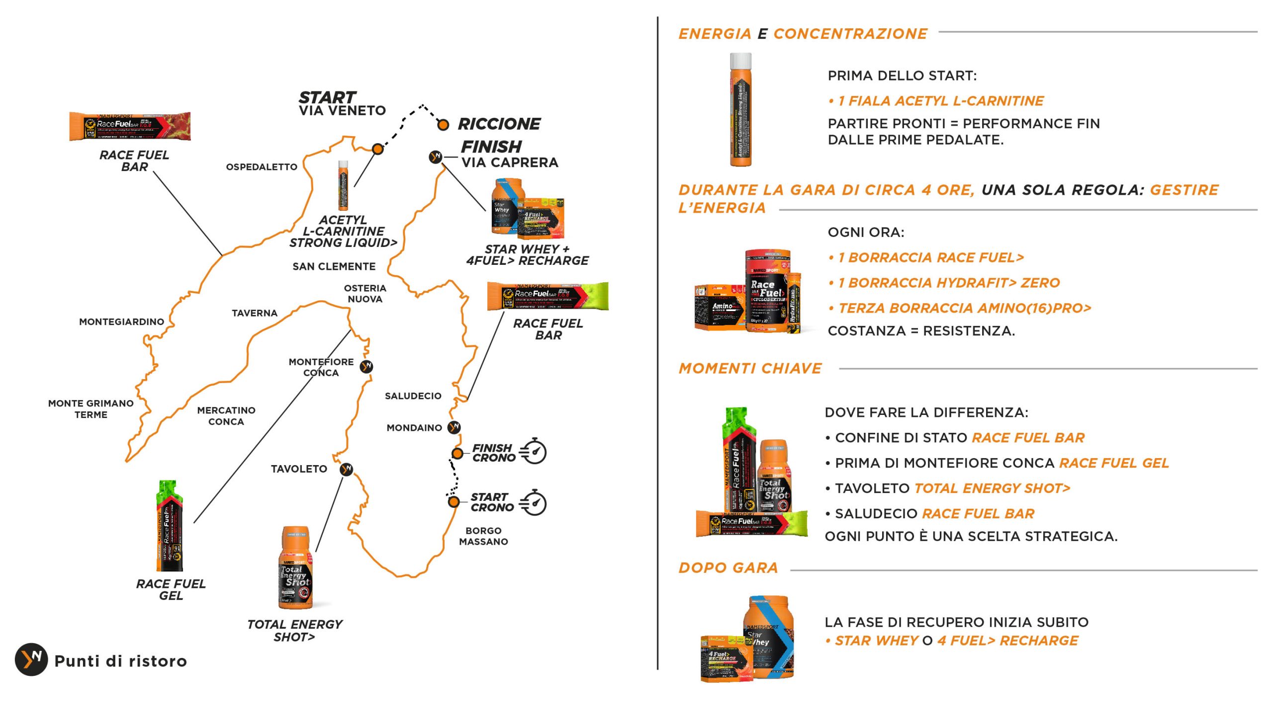 - A Tavoleto → Total Energy Shot (per avere lo sprint nella crono a seguire)